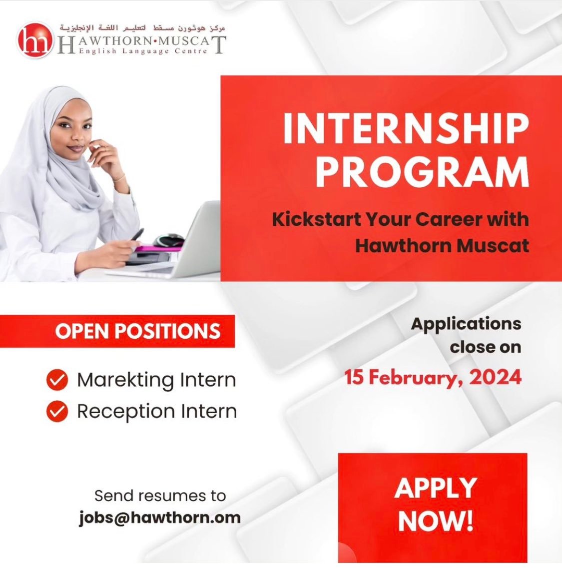 مركز هوثورن مسقط لتعليم اللغة الانجليزية - فرص تدريبية في مسقط