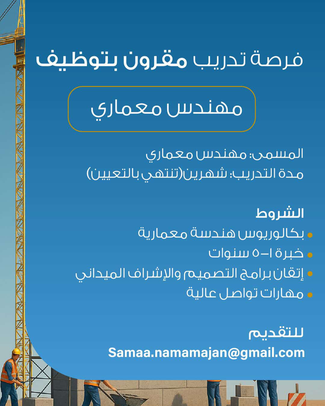 شركة نماء مجان - فرصة تدريب مقرونة بالتوظيف ( مهندس معماري )