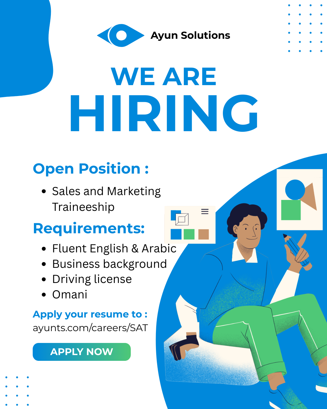 شركة عيون للحلول الهندسية في مسقط - تعلن عن تدريب للخريجين الجدد لمدة 3 أشهر ( مبيعات وتسويق )