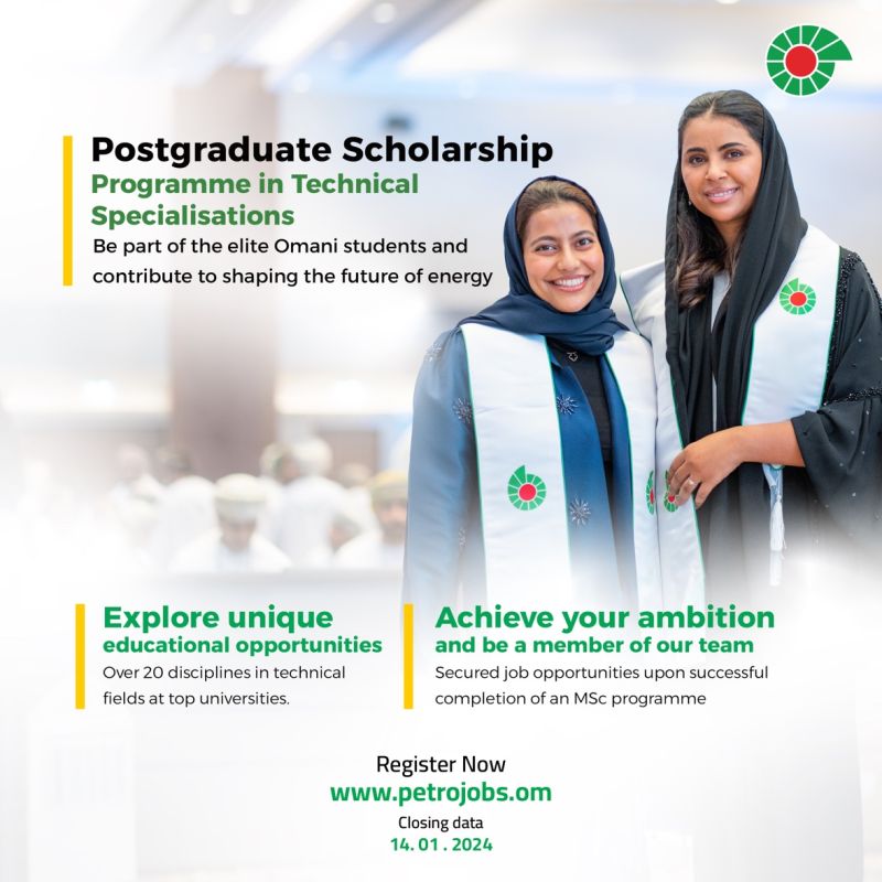 شركة تنمية نفط عمان - منح الدراسات العليا الفنية في مختلف التخصصات (في الخارج) 2024