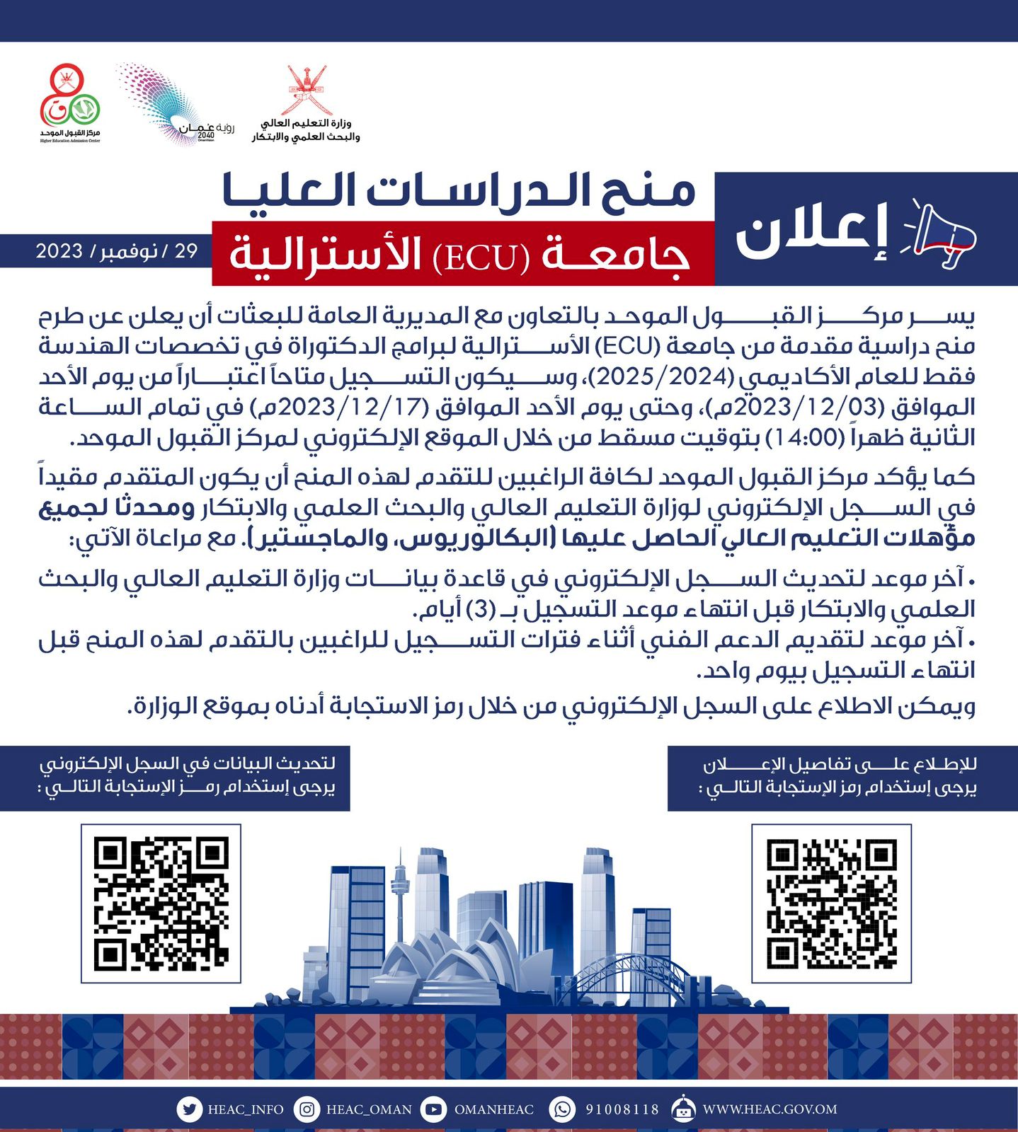 مركز القبول الموحد - إعلان منح الدراسات العليا لجامعة (ECU) الأسترالية
