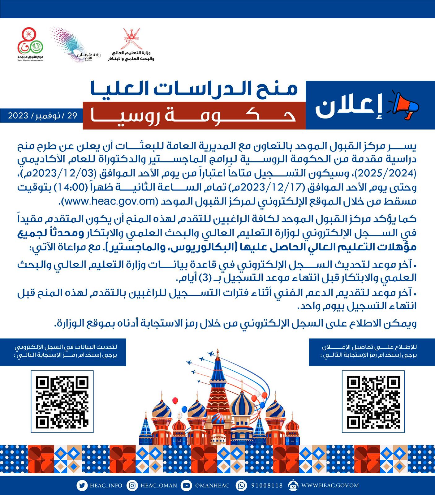 مركز القبول الموحد - إعلان منح الدراسات العليا (حكومة روسيا)