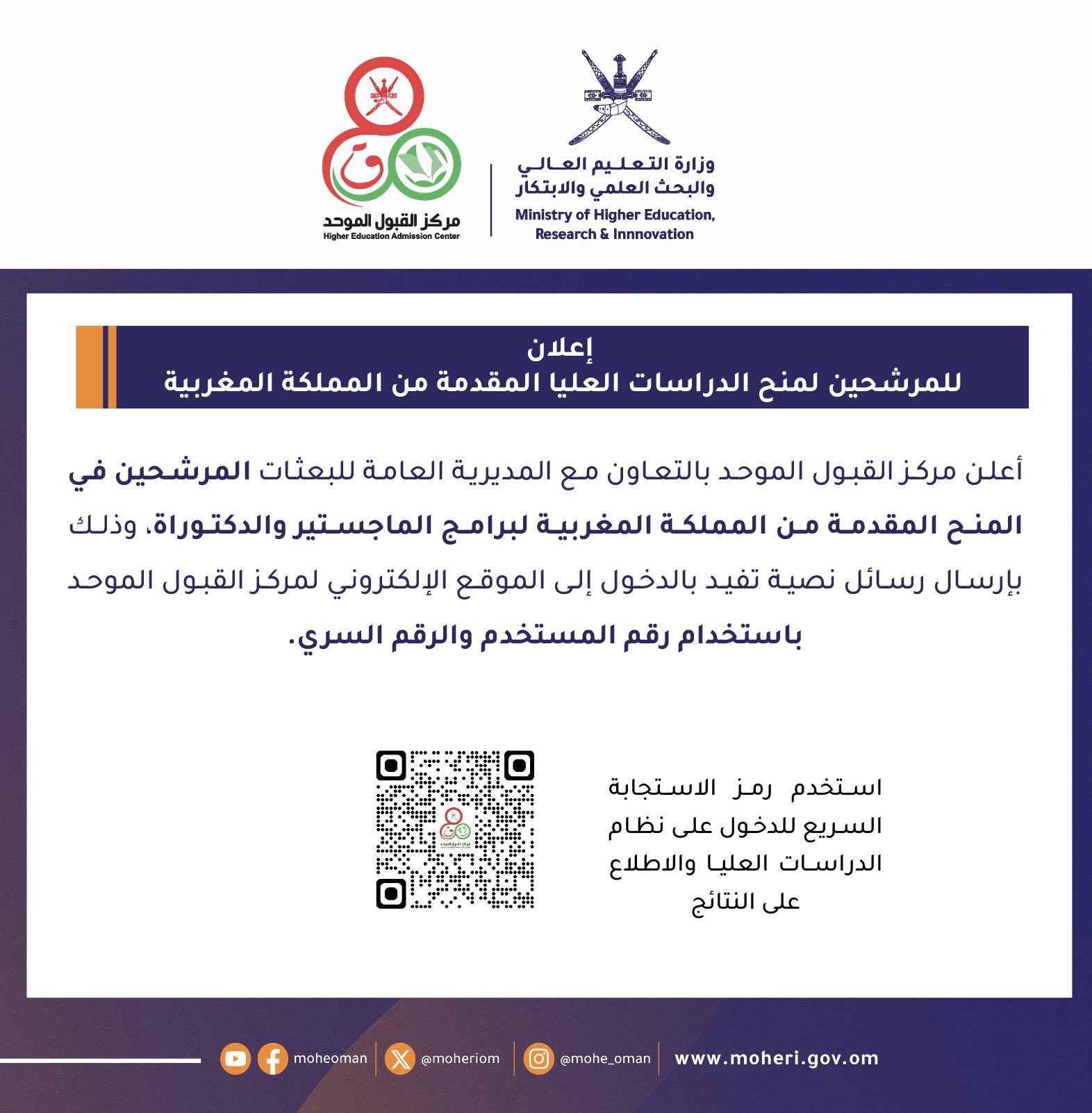 مركز القبول الموحد - إعلان للمرشحين لمنح الدراسات العليا المقدمة من المملكة المغربية