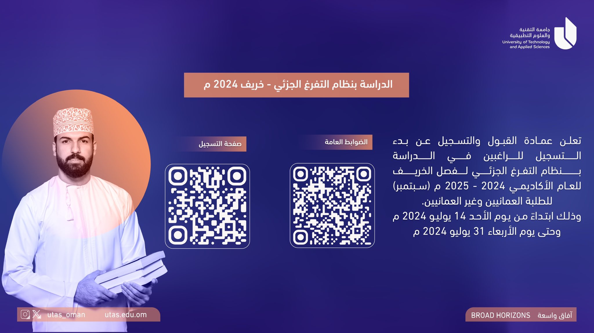 جامعة التقنية والعلوم التطبيقية - بدء استقبال طلبات الراغبين في الدراسة بنظام التفرغ الجزئي لفصل الخريف