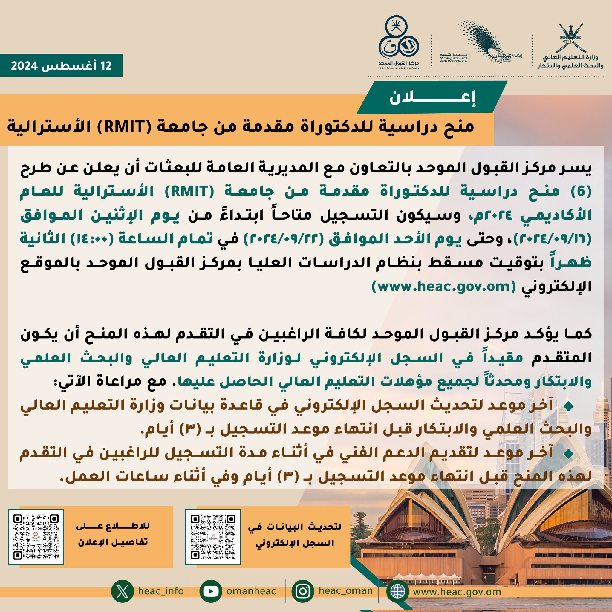 مركز القبول الموحد - منح دراسية للدكتوراة مقدمة من جامعة (RMIT) الأسترالية