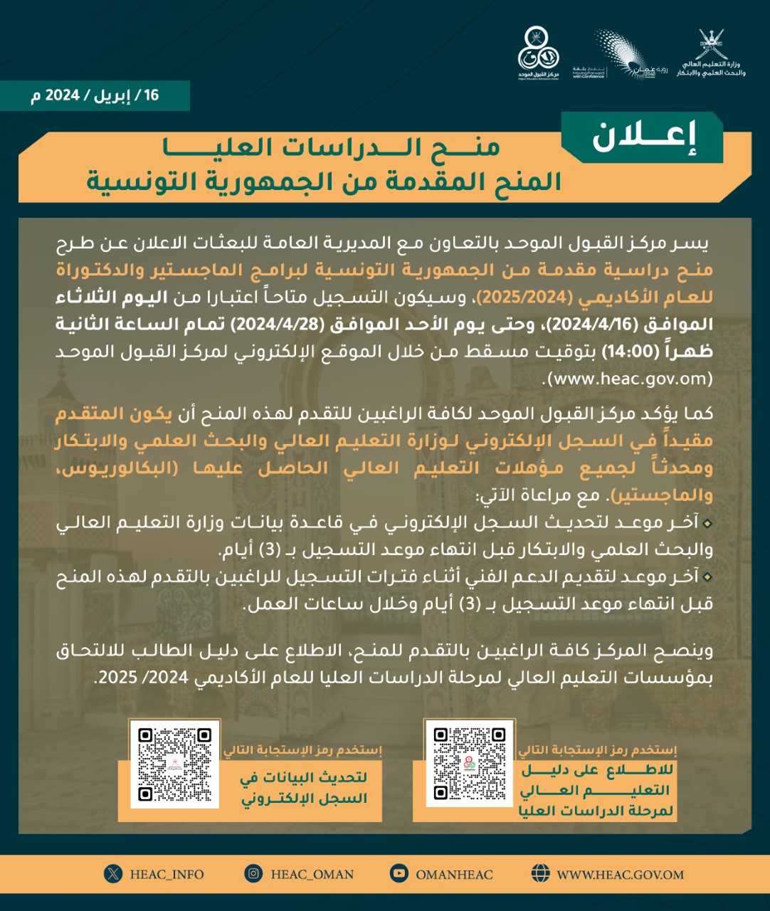 مركز القبول الموحد - منح الدراسات العليا مقدمة من الجمهورية التونسية