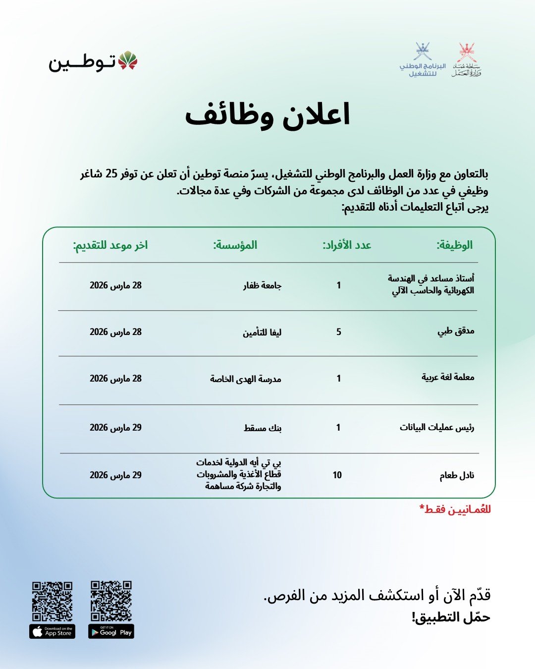 منصة توطين - توفر 25 شاغر وظيفي لدى مجموعة من الشركات وفي عدة مجالات