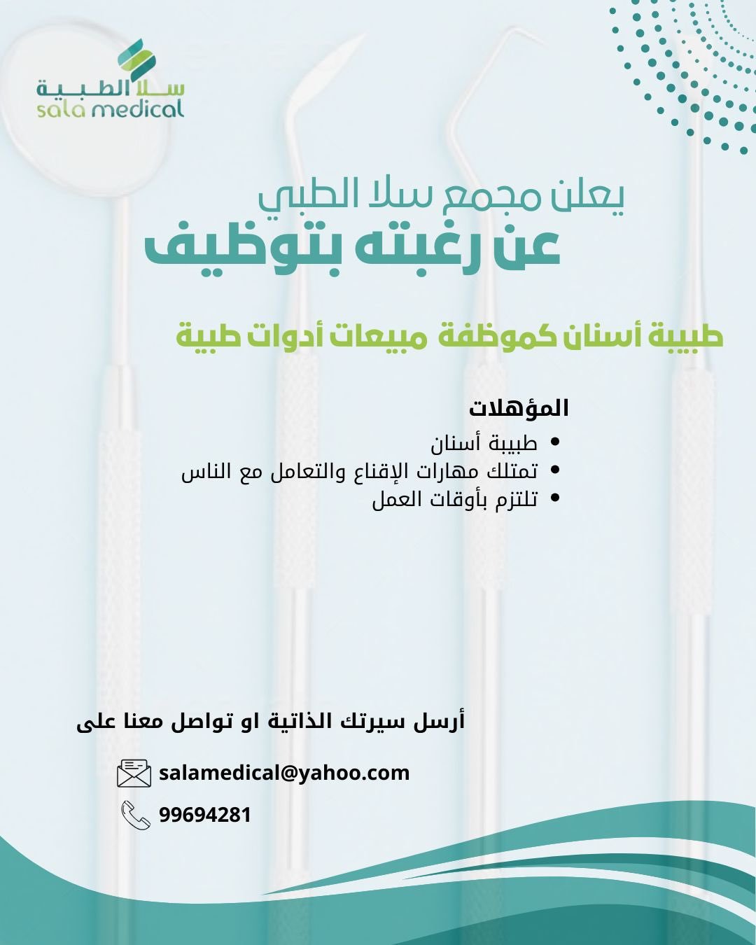 مجمع سلا الطبي في بوشر - وظيفة شاغرة ( طبيبة أسنان )