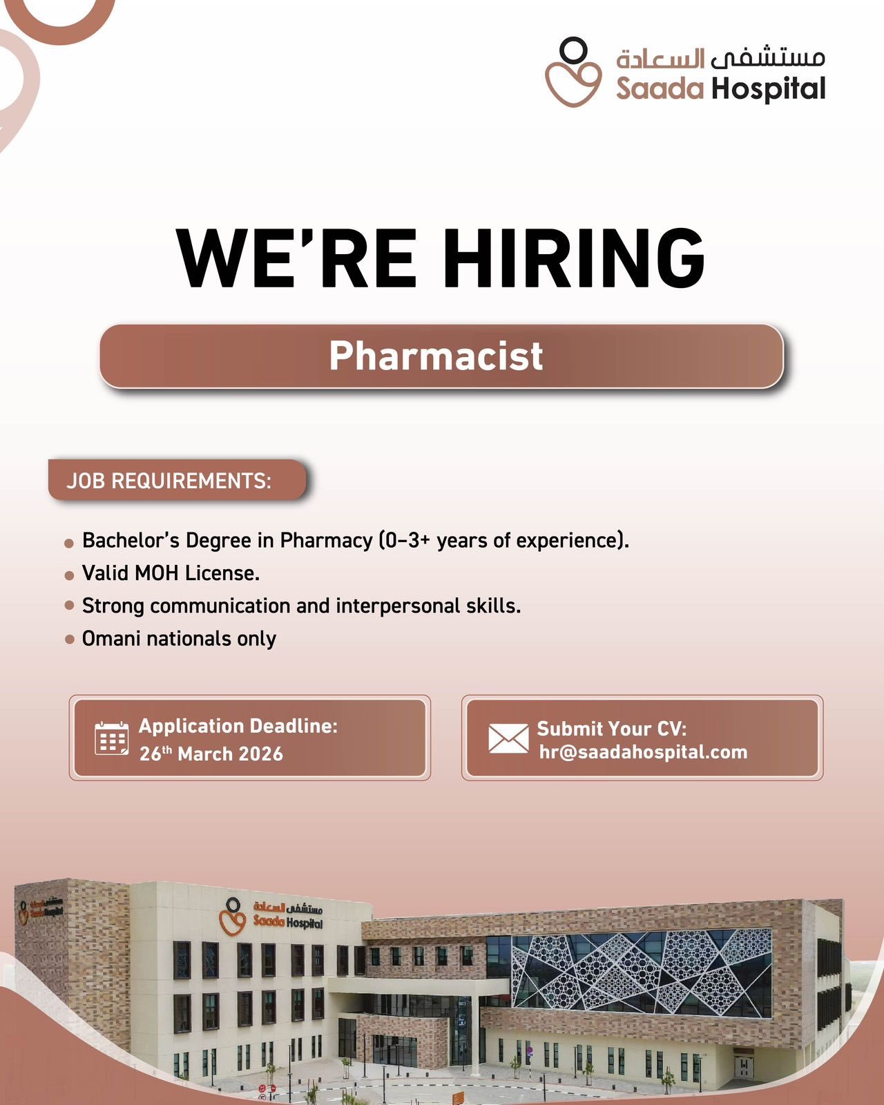 مستشفى السعادة في صحار - وظيفة شاغرة ( Pharmacist )