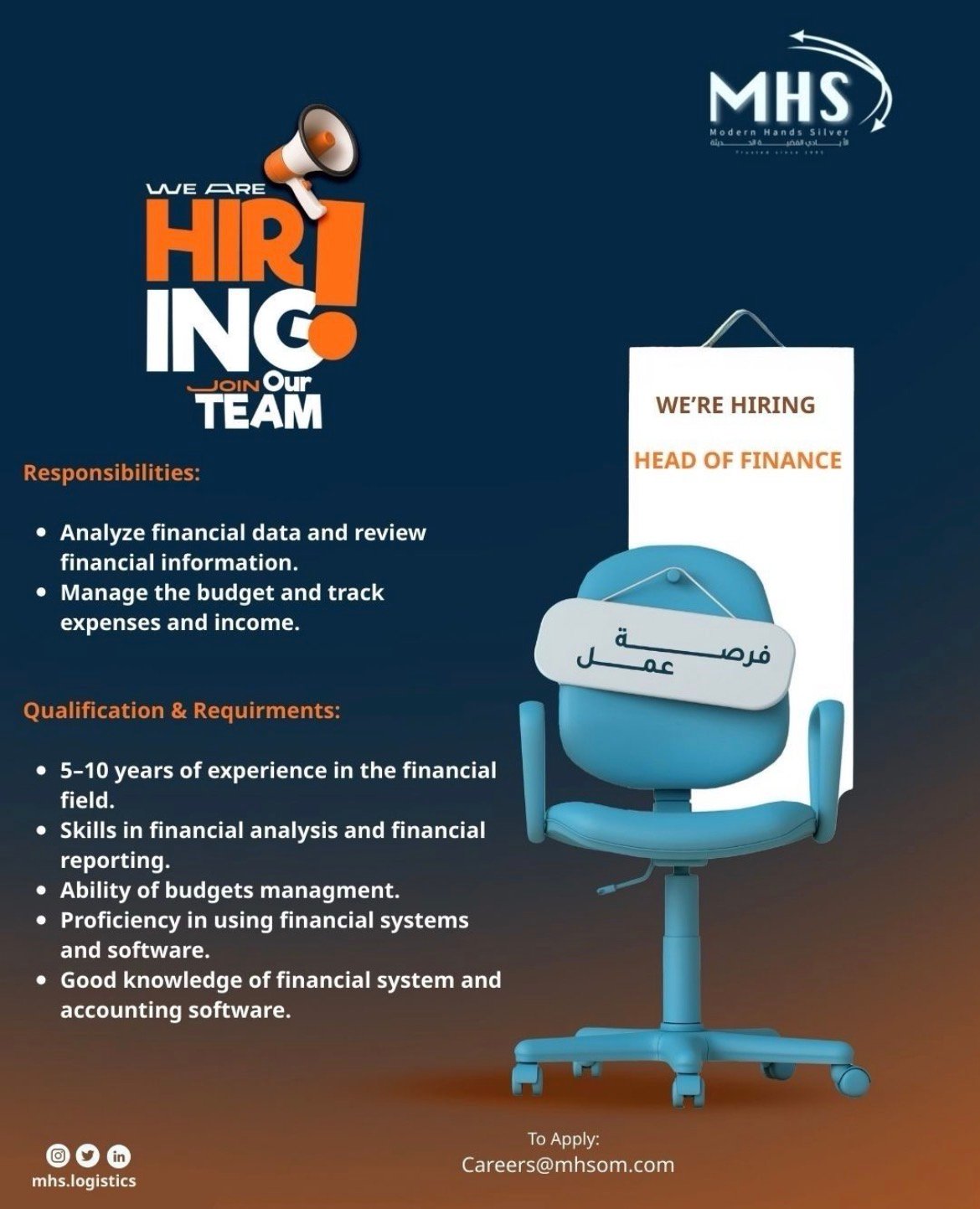 شركة الأيادي الفضية الحديثة - وظيفة شاغرة ( HEAD OF FINANCE )