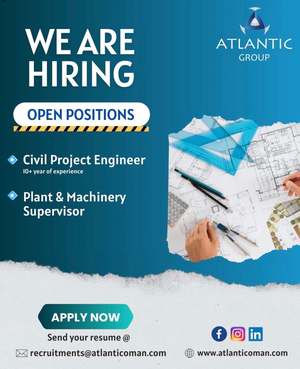 شركة الأطلسي للإنشاءات - وظيفتين شاغرتين