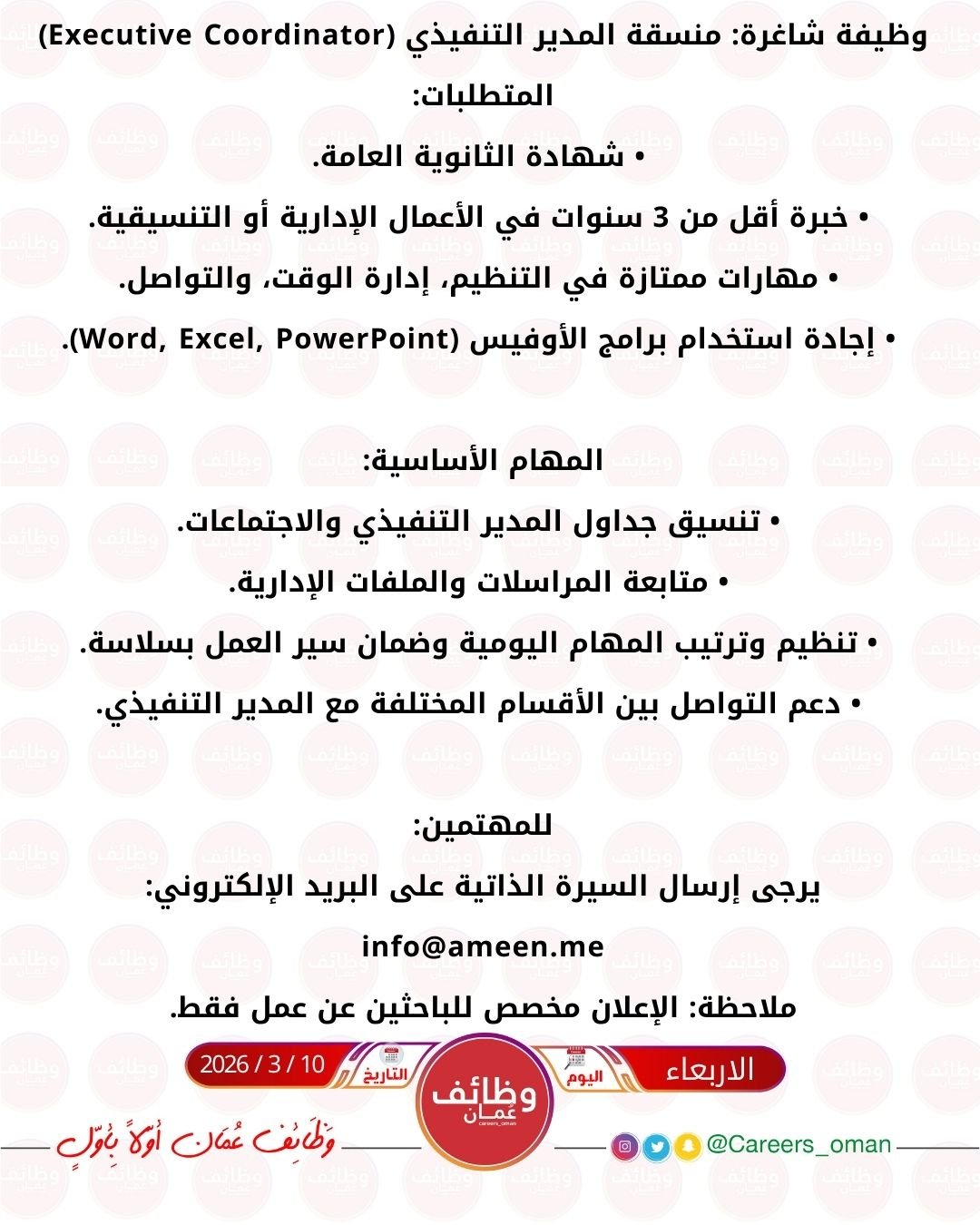 شركة رائدة في غلا - وظيفة شاغرة ( منسقة المدير التنفيذي )