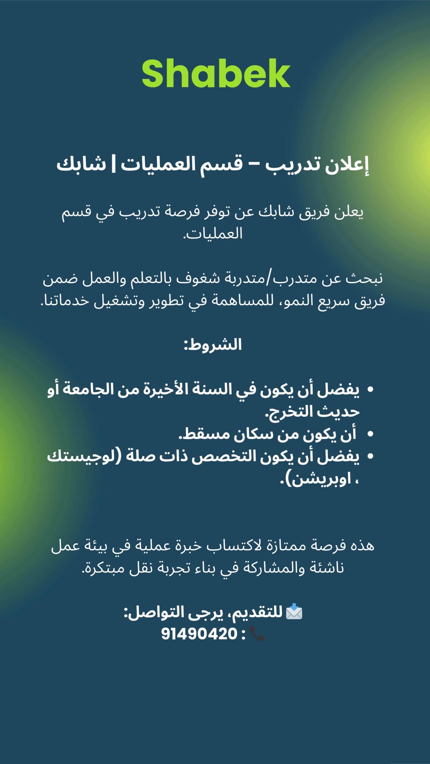 شركة شابك - توفر فرصة تدريب في قسم العمليات