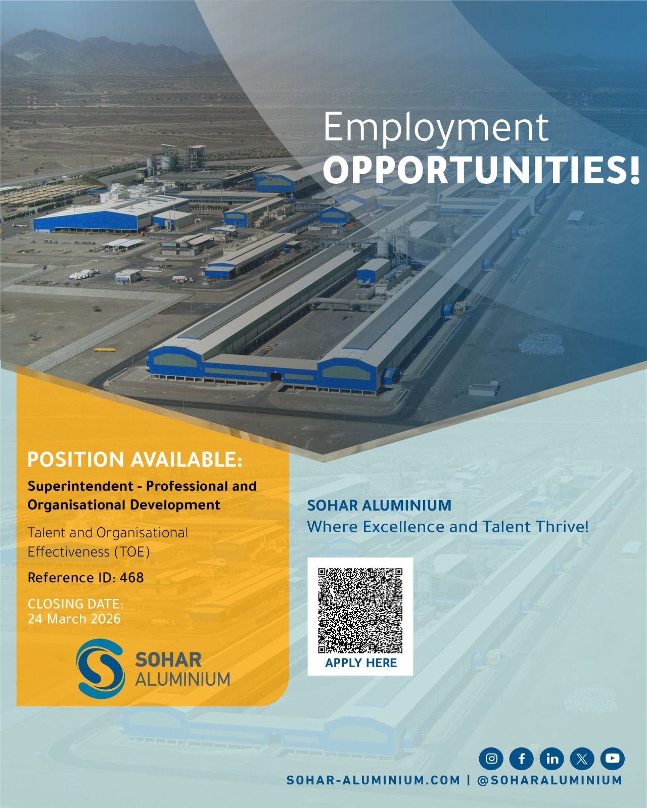 شركة صحار ألمنيوم - وظيفة شاغرة ( Superintendent - Professional and Organizational Development )