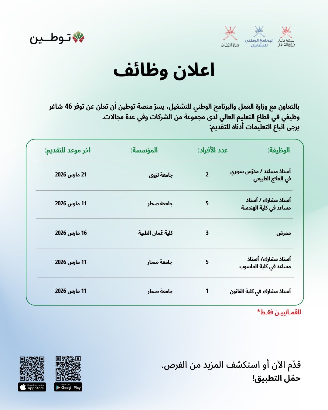 منصة توطين - توفر 46 شاغر وظيفي لدى مجموعة من الشركات وفي عدة مجالات