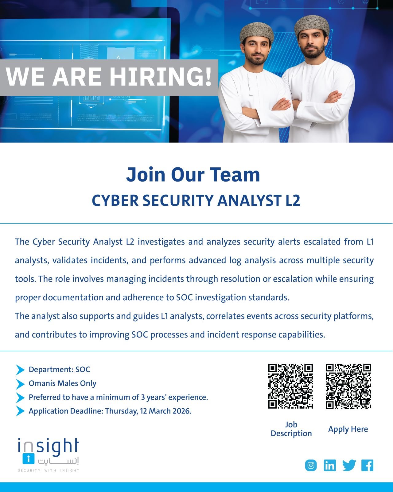 شركة إنسايت - وظيفة شاغرة ( Cyber Security Analyst L2 )