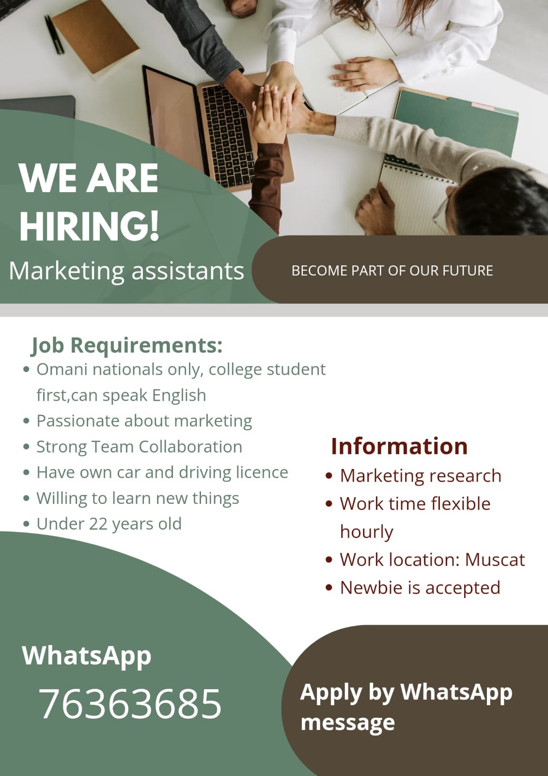 شركة رائدة في مسقط - وظيفة شاغرة ( Marketing assistants )