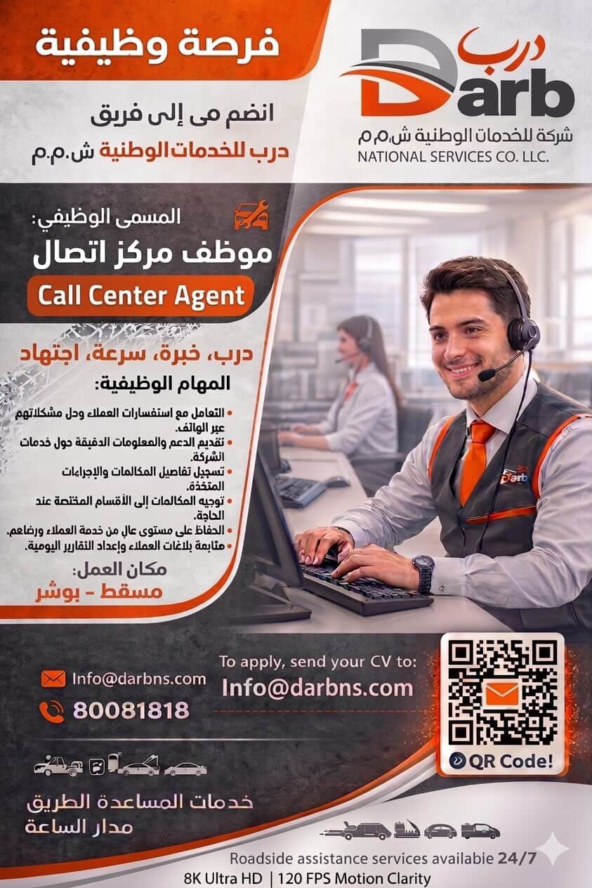 شركة درب للخدمات الوطنية في بوشر - وظيفة شاغرة ( موظف/ة مركز اتصال )