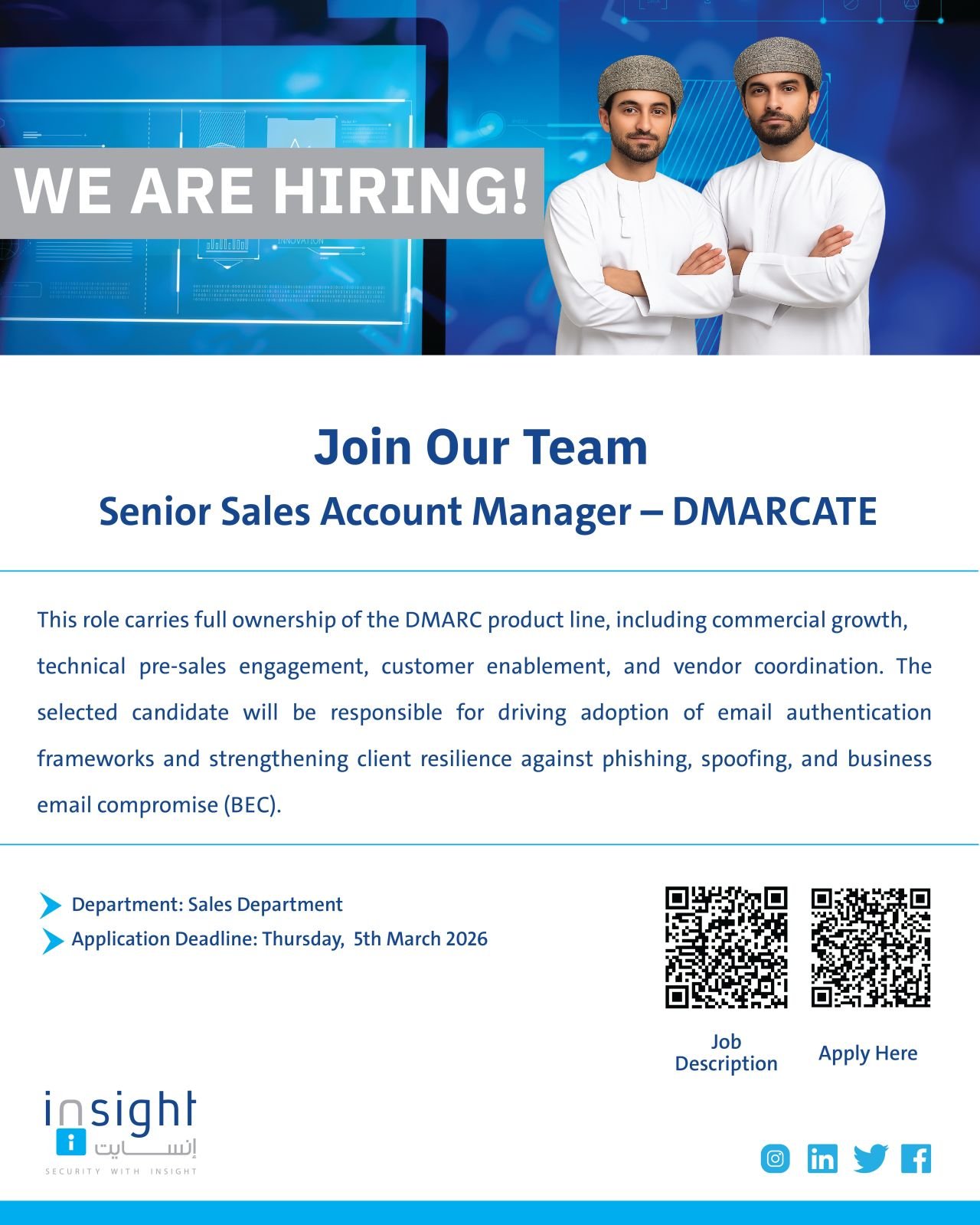 شركة إنسايت - وظيفة شاغرة ( Senior Sales Account Manager – DMARCATE )
