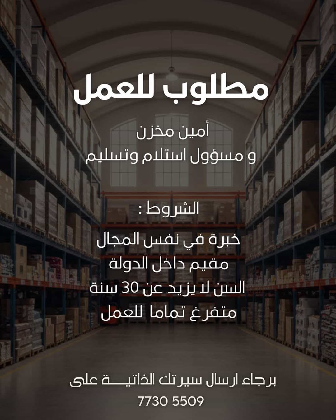 كنز للعطور - وظيفة شاغرة ( أمين مخزن و مسؤول استلام وتسليم )