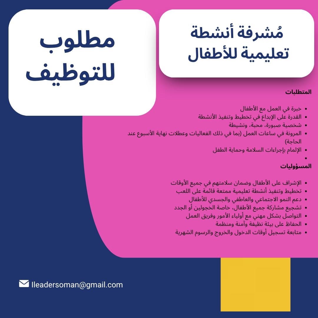 حضانة PlayDay - وظيفة شاغرة ( مُشرفة أنشطة تعليمية للأطفال )